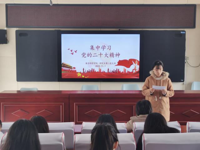 11月1日,太阳成集团tyc151cc于11号教学楼A201教室组织集中学习党的二十大精神。本次活动由研究生第二党支部组织委员张晓冬、宣传委员王辉主持,研究生第二党支部全体成员参加。