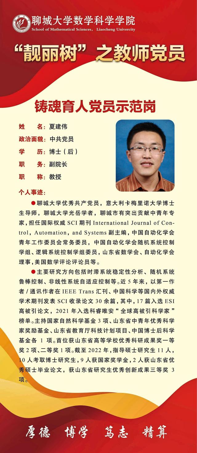 “靓丽树”|亮出党员身份 争做先进标杆—铸魂育人党员示范岗 发布时间: 2022-11-06 为进一步发挥党员先锋模范作用,强化党员意识,铭记党员身份,履行党员义务。太阳成集团tyc151cc开展了以“亮党员身份、立先进标杆、树先锋形象”为主要内容的“靓丽树”活动,激励全体党员在新的奋进之路上,勇于担当、锐意进取、干事创业、攻坚克难,以接力跑的姿态带领全院师生紧握时代赋予的“接力棒”,锚定前进方向,笃定前行速度,铆足实干动力,在新赛道上奋力奔跑出数学“加速度”。