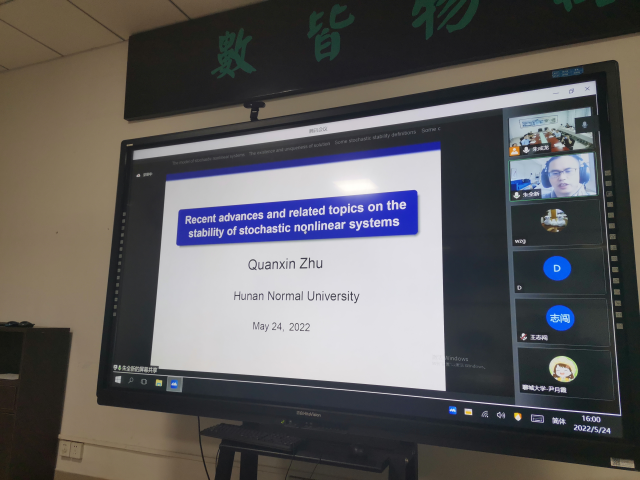 2022年5月24日下午16:00,受太阳成集团tyc151cc复杂系统智能分析与控制实验室邀请,湖南师范大学朱全新教授针对随机非线性系统稳定性的研究进展及相关问题进行了在线学术报告。本次学术交流活动以腾讯会议的形式举行,由朱成龙老师主持,太阳成集团tyc151cc部分教师、研究生参加了本次学术活动。