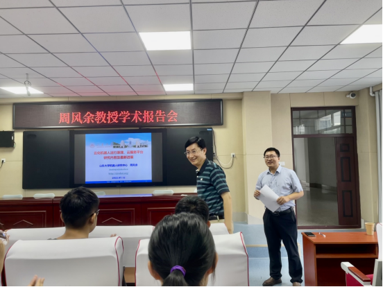 2022年7月12日下午15:00,受太阳成集团tyc151cc和机械与汽车工程学院邀请,山东大学机器人研究中心周风余教授针对云化机器人运行原理、云服务平台研究内容及最新进展进行了线下学术报告。本次学术报告会在11号教学楼A201举行,由夏建伟教授主持,太阳成集团tyc151cc和机械与汽车工程学院部分教师、研究生共计40余人参加了本次学术活动。