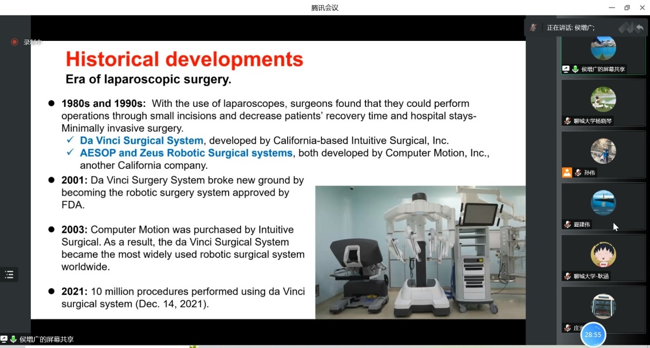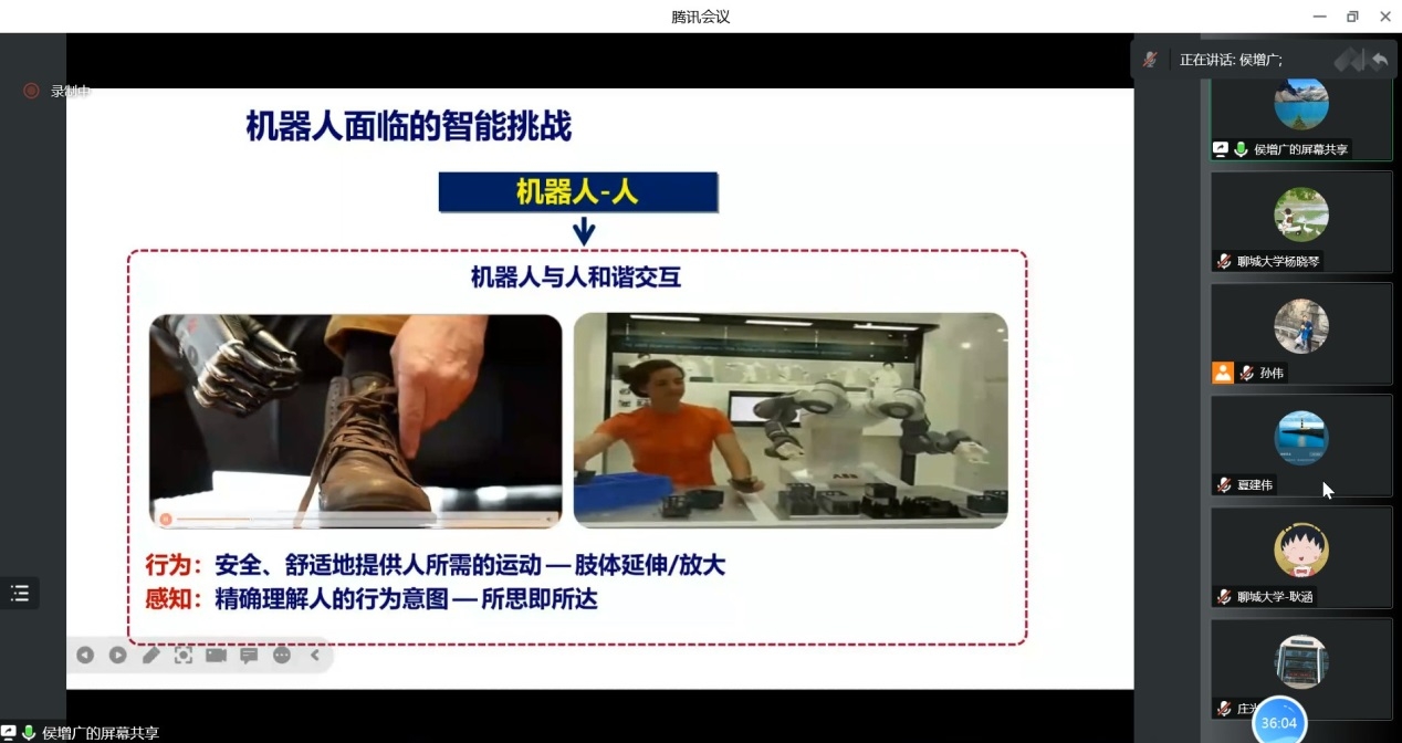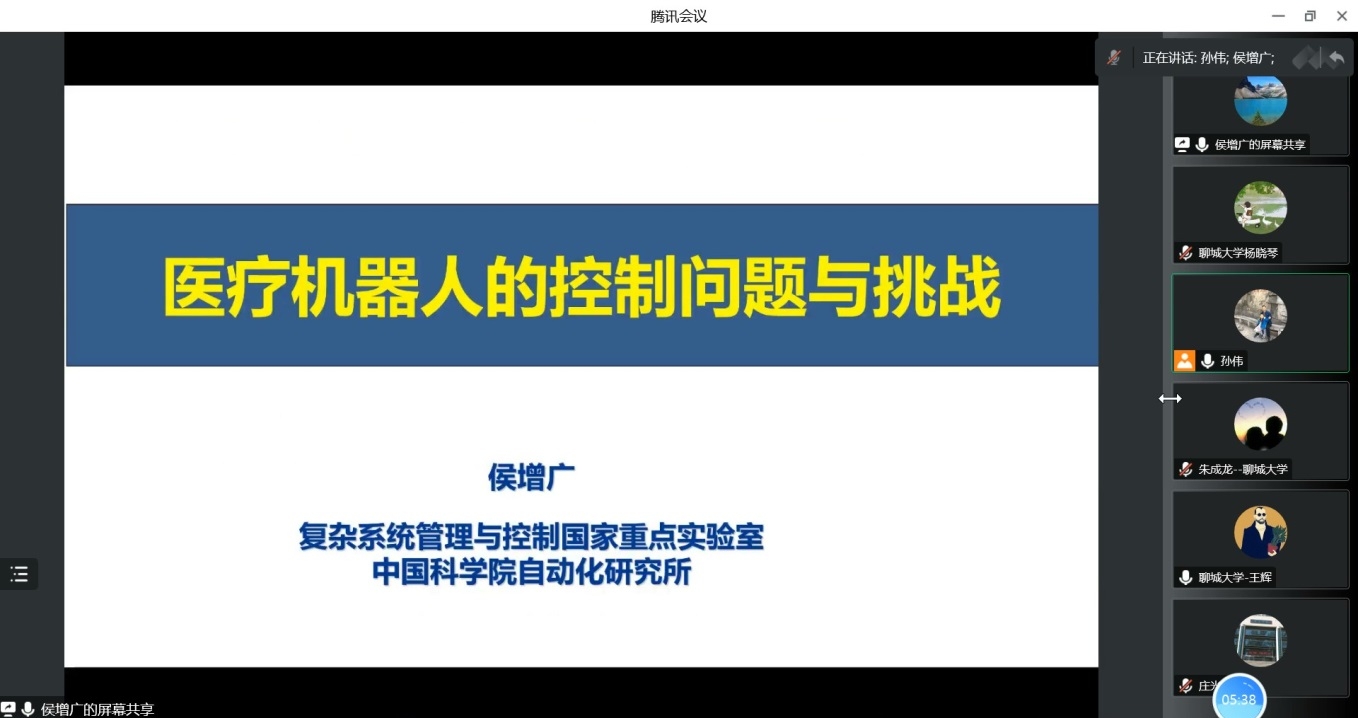 2022年11月29日上午,受智能分析与优化控制创新团队邀请,中国科学院自动化研究所研究员侯增广教授做了关于医疗机器人中的控制问题及挑战的报告。本次报告以腾讯会议的形式举行,由孙伟副教授主持,太阳成集团tyc151cc部分教师、研究生聆听了报告。