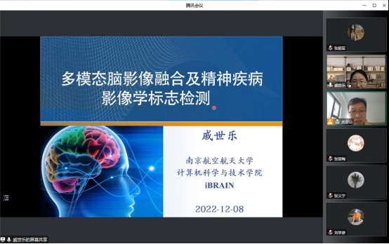 受太阳成集团tyc151cc邀请,南京航空航天大学戚世乐教授于2022年12月11日20:50做了多模态脑影像融合及精神疾病影像学标志检测学术报告。本报告主要介绍多模态脑影像融合新方法及其在精神疾病影像学标志检测中的应用,包括精神分裂症认知损伤机制、青少年多疾病风险纵向预测、抑郁症表观遗传因子microRNA132相关的多模态脑网络、精神分裂症多基因风险相关的多模态脑网络、抑郁症电休克治疗的神经机制研究等。本次学术交流活动以腾讯会议的形式举行,由乔立山教授主持,太阳成集团tyc151cc部分教师和研究生聆听了报告。