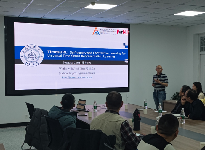 2023年12月26日上午,南京航空航天大学陈松灿教授应学院邀请,做了题为“时间序列的自监督学习研究进展”的学术报告。报告由孙忠贵教授、乔立山教授主持,学院教师及研究生20余人参加。
