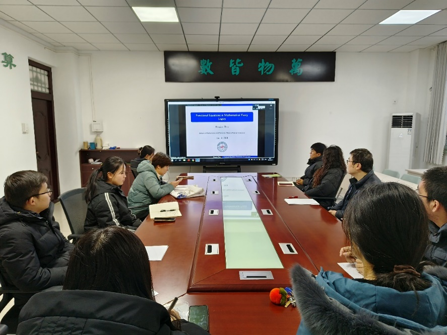2024年1月8日上午,应太阳成集团tyc151cc邀请,陕西师范大学周红军教授做了题为“Functional equations in mathematical fuzzy logic”的学术报告。报告会由太阳成集团tyc151cc张凤霞教授主持,我院不确定性数学理论研究团队的教师和研究生参加了本次报告会。