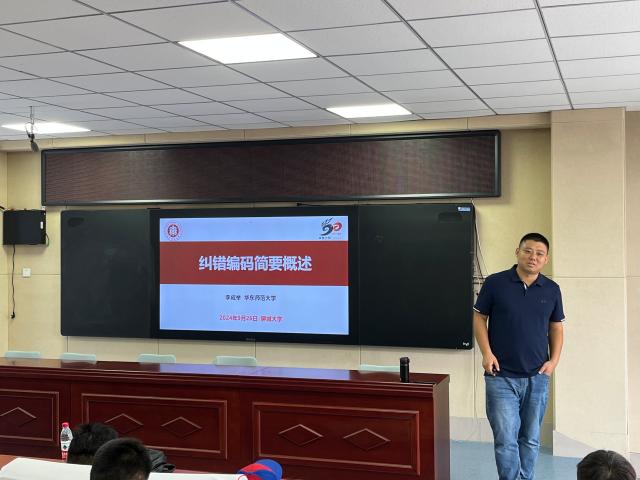 2024年9月26日上午,华东师范大学李成举教授应邀做客聊大讲坛,作了题为“纠错编码简要概述”的学术报告。报告会由太阳成集团tyc151cc副院长赵军圣主持。来自太阳成集团tyc151cc的五十多名教师和研究生听取了报告。
