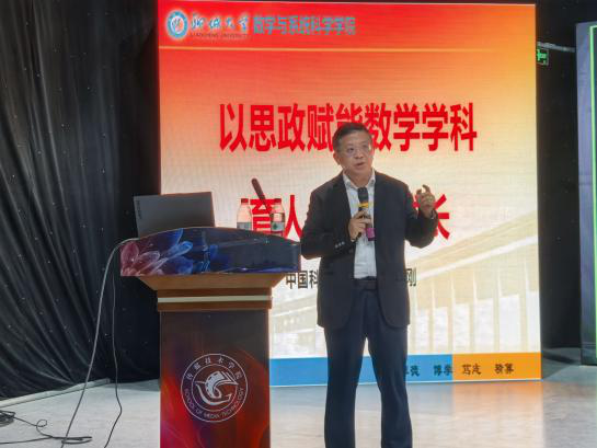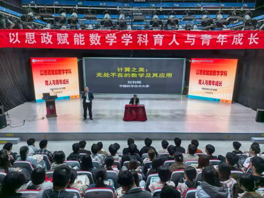 刘利刚始终坚守科研报国初心与立德树人使命。报告中,他以自身科研历程与育人实践为切入点,系统阐释数学学科在基础研究、技术创新、产业升级与国家战略中的核心支撑作用,深入解读思政教育与数学专业深度融合的内在逻辑与实践路径。随后,他结合前沿科研项目与行业发展趋势,从微积分描绘的变化规律,到线性代数构建的空间秩序;从概率论捕捉的随机之美,到运筹学优化的精准决策,生动传递了科学家精神的时代内涵。