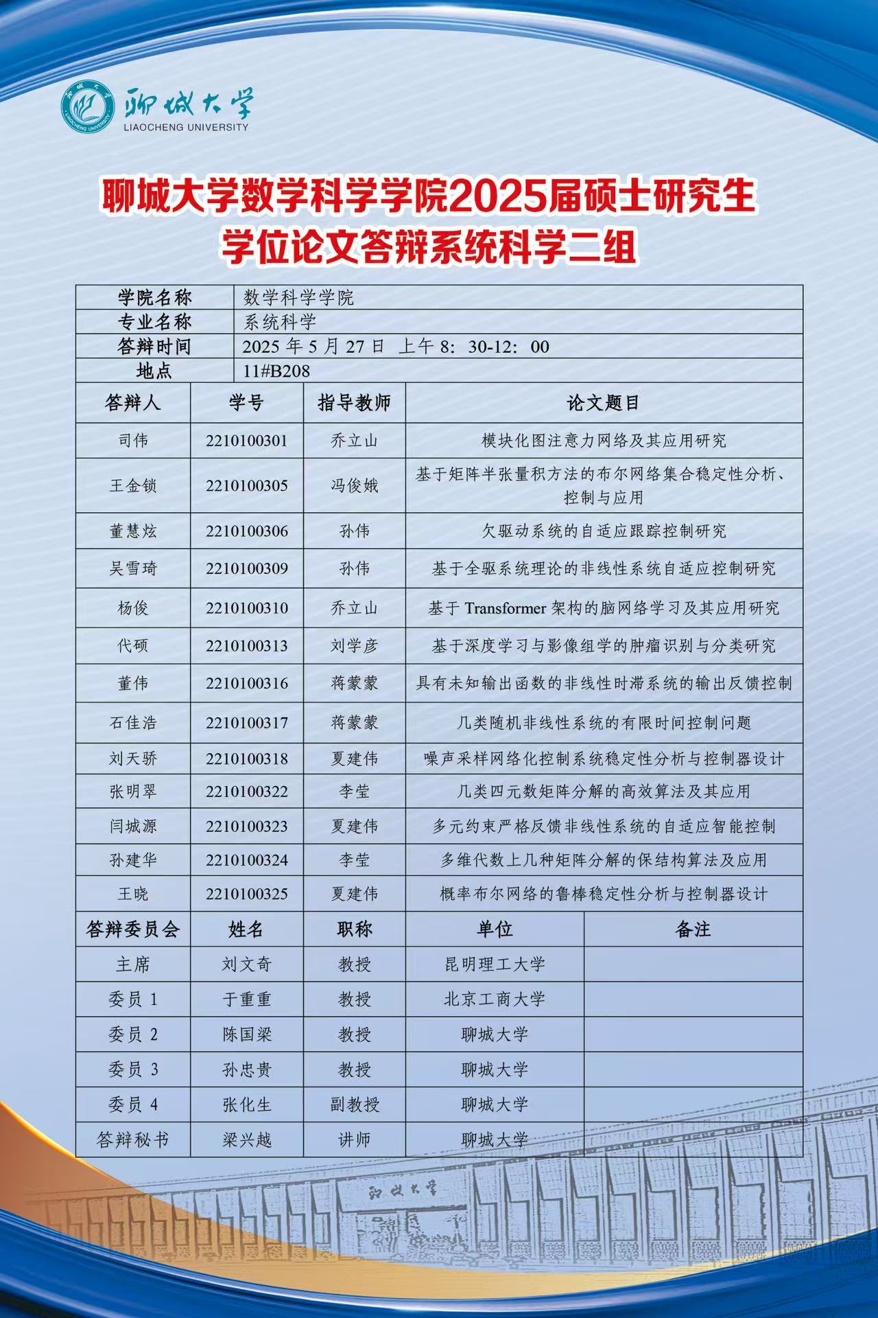 太阳成集团tyc151cc2022届系统科学专业硕士研究生答辩公告