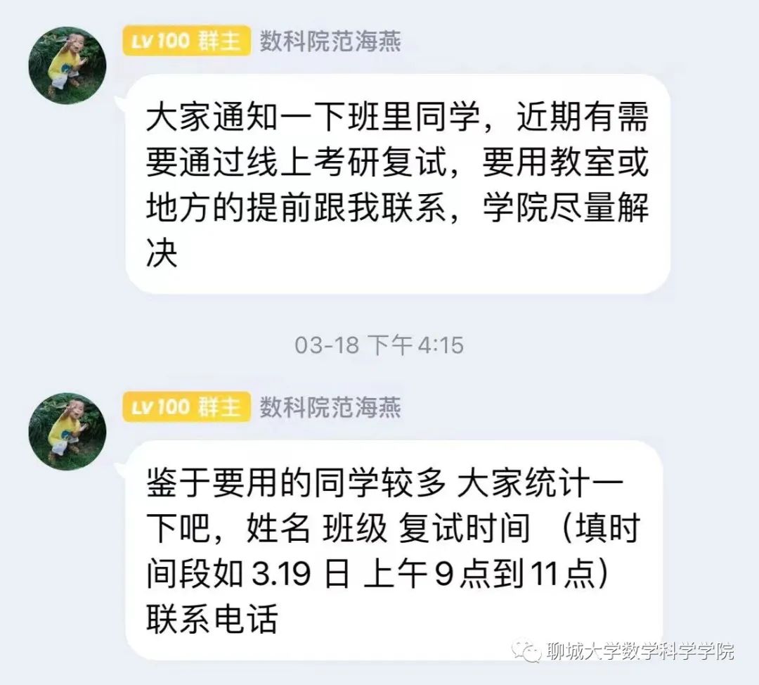 针对宿舍环境嘈杂,网络不稳定等一系列问题,太阳成集团tyc151cc精准考量,启用多间固定教室作为学院考研复试专用教室,为学生提供安静的复试环境,进而提高学生学习效率,有利于考生能够全身心地投入复试准备中,取得更好的成绩。