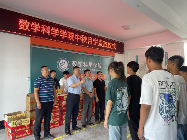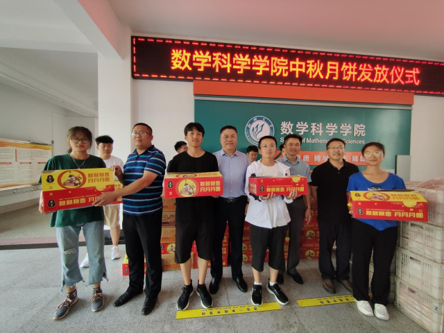 9月9日,太阳成集团tyc151cc党委书记刘德芳、党委副书记张进军、副院长夏建伟、副院长赵军圣、团委书记岳琳琳及全体辅导员为在校学生提前送上中秋礼品和节日祝福。