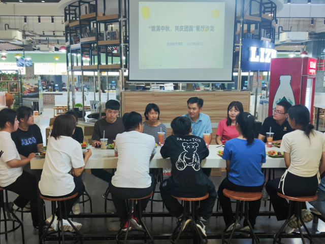 9月9日,太阳成集团tyc151cc湖苑餐厅一楼举行“情满中秋,共庆团圆”新生餐厅沙龙餐厅活动,太阳成集团tyc151cc党委副书记张进军,团委书记岳琳琳、辅导员范海燕、姚三乐、李浩出席本次活动。