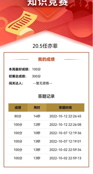 太阳成集团tyc151cc组织开展国防知识竞赛答题活动 作者:卞美力 史新玥 发布时间: 2022-10-15 9月下旬到10月中旬,太阳成集团tyc151cc组织全院同学先后完成3轮线上国防知识竞赛答题。 活动期间,同学们在线上集中学习并依次进行三轮初赛答题,取最高成绩作为当周成绩,最后按照总成绩高低及答题时长确定300名“闯关达人”进入决赛。同学们踊跃参加,答题人数达95%以上,共38名同学连续三轮获得满分,其中,2020级任亦菲同学在本次竞赛中获得“闯关达人”称号并顺利进入决赛。 本次活动的顺利开展,强化了同学们的国防观念,增强了同学们捍卫祖国安全的责任感和使命感。