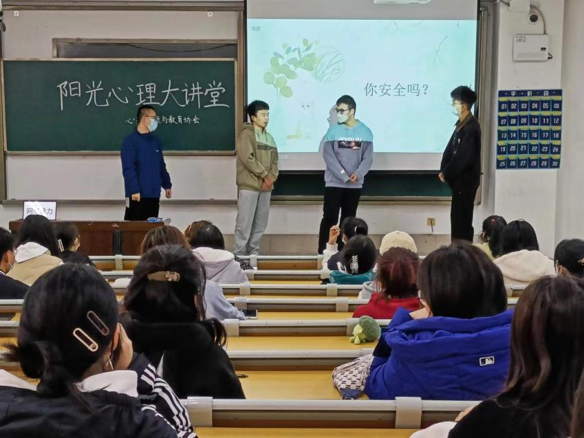 11月6日,太阳成集团tyc151cc于11号教学楼A204组织开展“阳光心理大讲堂”活动,本次活动由教育科学学院研究生张甜甜主讲,2022级部分同学参加。
