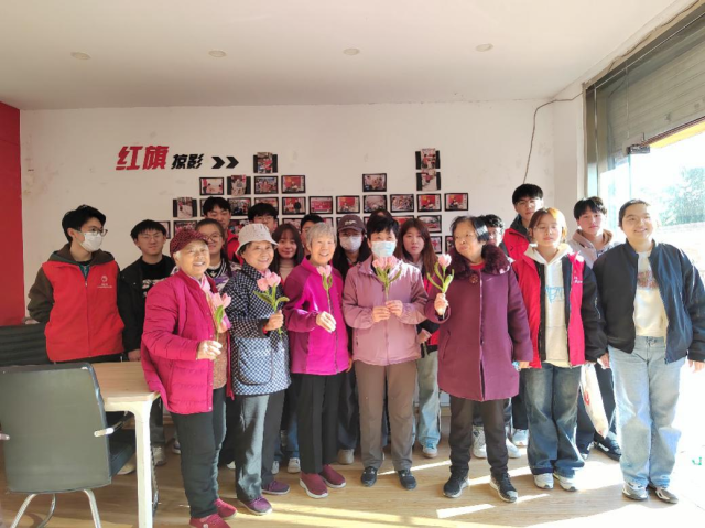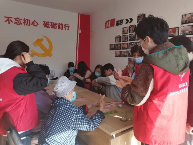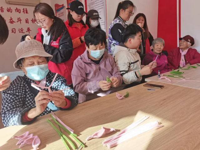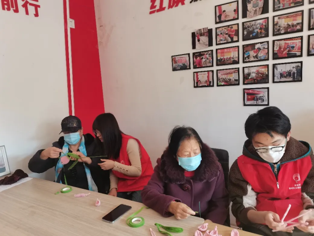 与老年人共同制作永生花