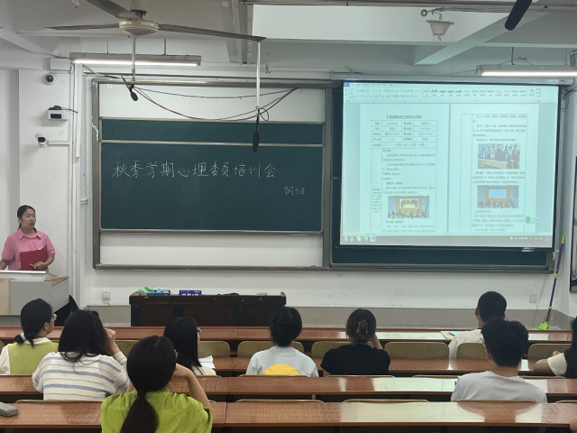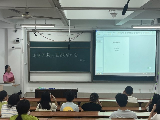 9月5日,太阳成集团tyc151cc在11号教学楼A104举办秋季学期心理委员培训会,本次培训会由辅导员范海燕主持,2021级、2022级、2023级全体心理委员参加。