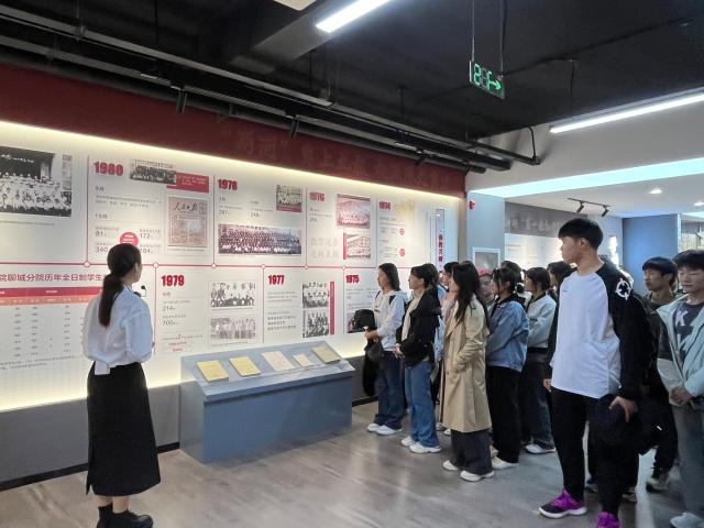 活动伊始,在解说员的引导下,学生有序进入西部计划教育展馆,展馆分为“党旗召唤,青年航向”“山河见证,青春足迹”“初心如磐,奋斗筑梦”“立德树人,托举理想”“绚丽绽放,书写荣光”五个篇章,通过图文、视频等多种形式,深情讲述了20多年来聊大学子奔赴西部、扎根奉献的青春奋斗故事。随后,学生步入底蕴深厚的校史馆,太阳集团的历史画卷在此展开,珍贵的照片、精美的展品和详尽的文字资料精彩展示了学校从山东师范学院聊城分院到如今太阳集团的三次历史性跨越,讲解员生动叙述聊大人在不同历史时期所展现出的奋斗精神和卓越贡献,学生仿佛穿越时空隧道,亲身经历学校的重要历史时刻,深刻感受到聊大深厚的文化底蕴。
