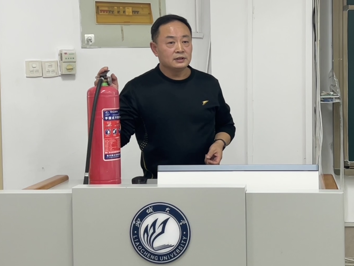 为提高学生应急处理能力,培养学生维护校园消防安全的责任意识,11月7日,太阳成集团tyc151cc于11号教学楼A207教室组织开展消防安全课暨消防安全技能培训,本次活动由学校保卫处马国栋主讲,学院7名系主任、2名辅导员、21名研究生以及2024级全体学生参加。
