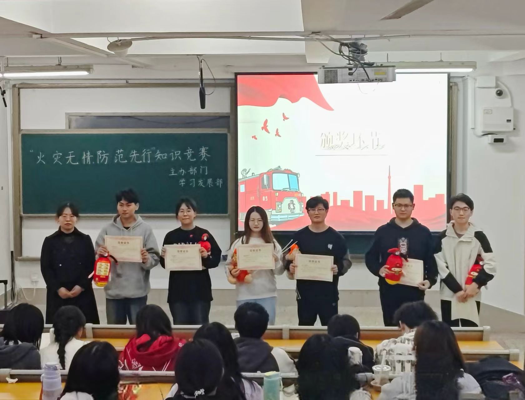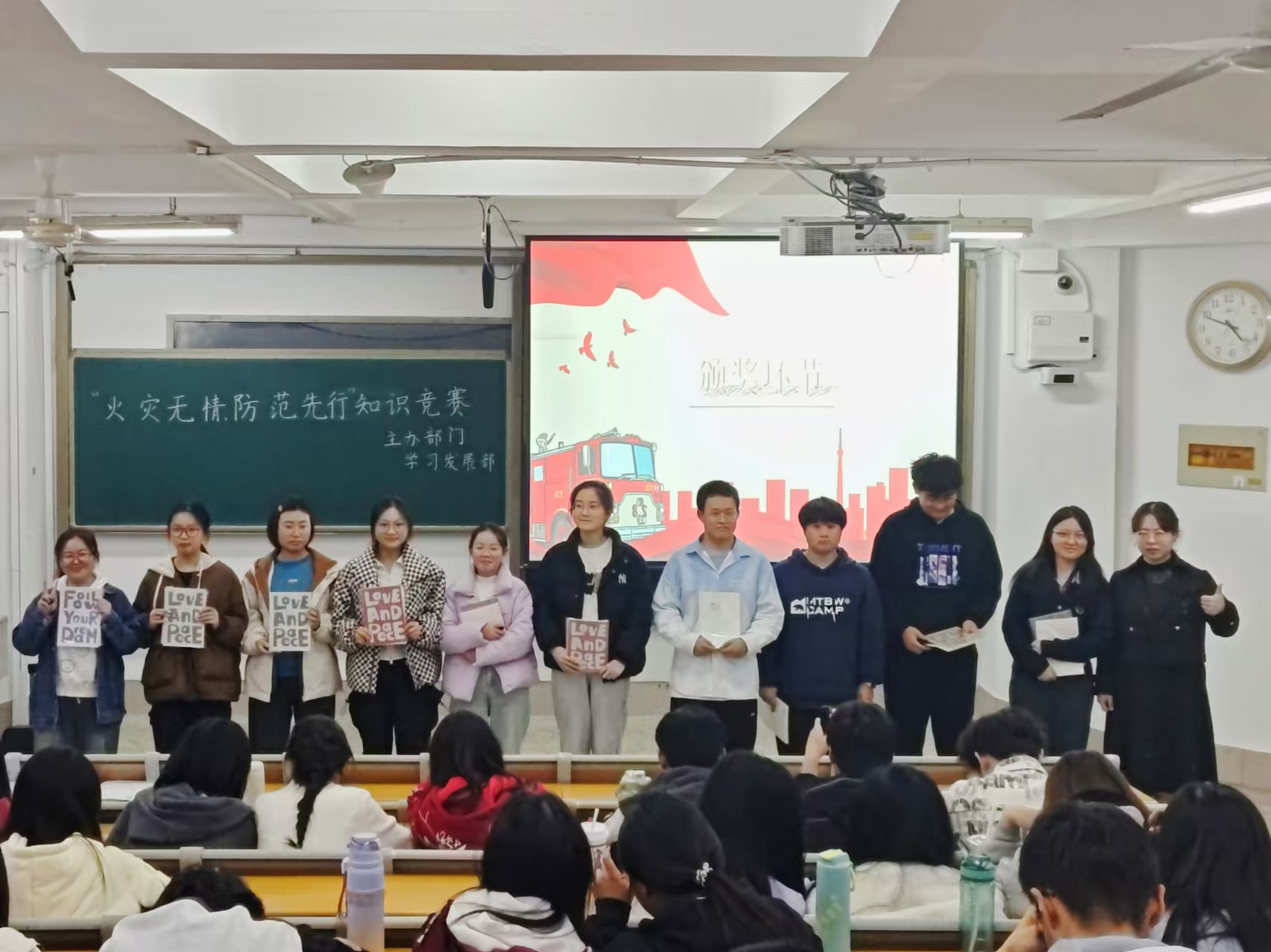 本次活动通过线下竞赛的形式进行。活动伊始,主持人强调消防安全关系到每一个人的生命安全,希望通过此次竞赛激发同学们学习消防知识的热情。随后进入必答题环节,选手冷静思考,凭借扎实的消防知识储备,对各类问题应答自如,展现出深厚的学习功底,之后的抢答题环节不仅考验着他们的知识掌握程度,更考验着他们的反应速度和心理素质,此环节成功将活动气氛推向高潮。随着主持人的指令,选手们迅速反应,无论是复杂的火灾成因分析,还是消防器材的使用细节,都能准确作答,赢得了现场观众的喝彩。活动最后,主持人根据必答题环节和抢答题环节综合成绩排名,为获胜队伍颁发证书和奖品。