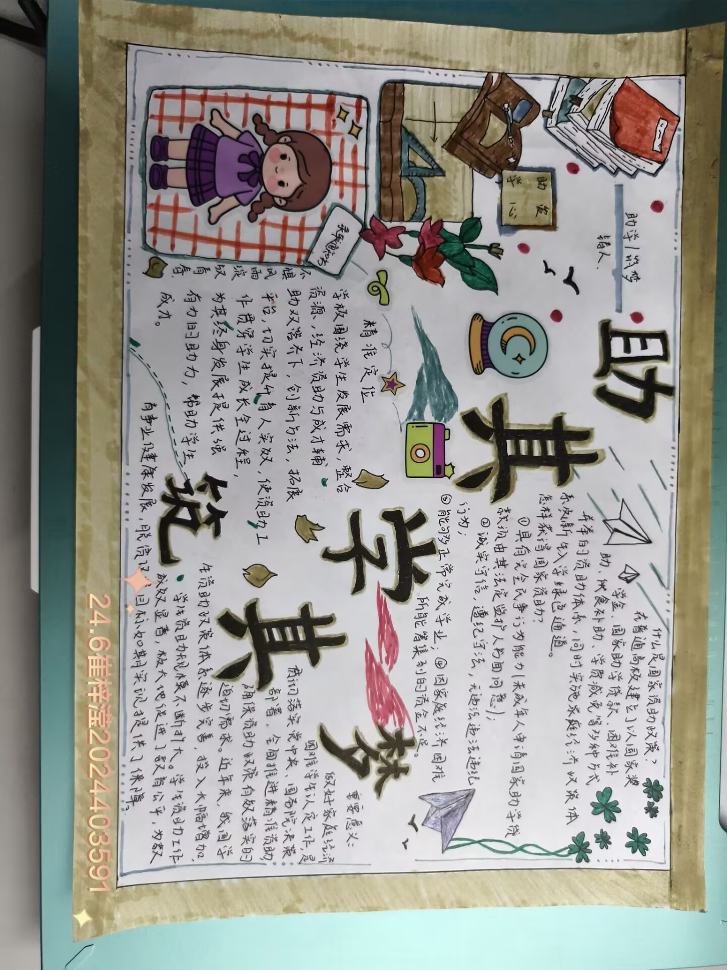 为增进同学们对资助政策的了解,激发他们的学习动力与追梦热情,12月2日到12月6日,太阳成集团tyc151cc勤工助学中心于线上举办“助其学,筑其梦”手抄报活动,2021级、2024级部分学生参加。