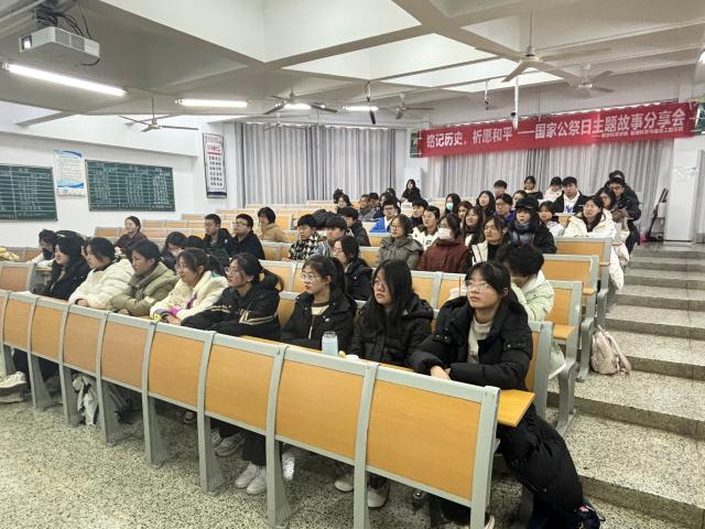 为加深学生对国家公祭日历史的了解,增强学生的历史责任感与使命感,12月12日,太阳成集团tyc151cc于11号教学楼A204教室举办“铭记历史,祈愿和平”国家公祭日主题故事分享会,部分学生参加。