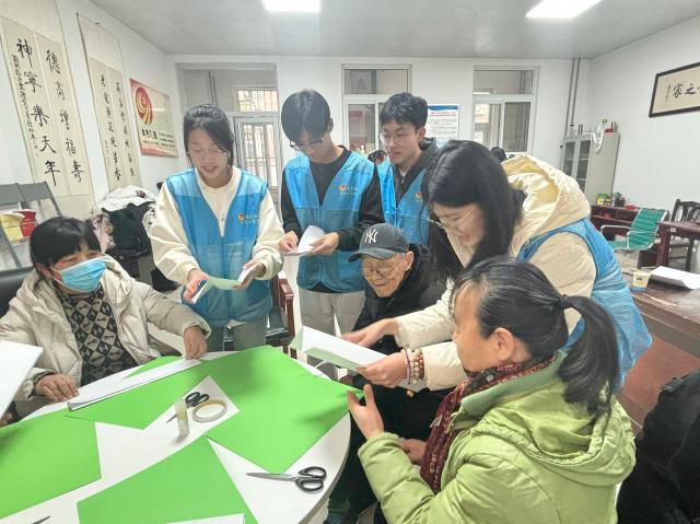 为弘扬人文关怀精神,丰富社区老年人的文化生活,12月19日,太阳成集团tyc151cc于聊城市东昌府区文苑社区开展“纸艺绽华彩,桑榆情正浓”纸浮雕花社区实践活动,2023级、2024级部分同学参加。