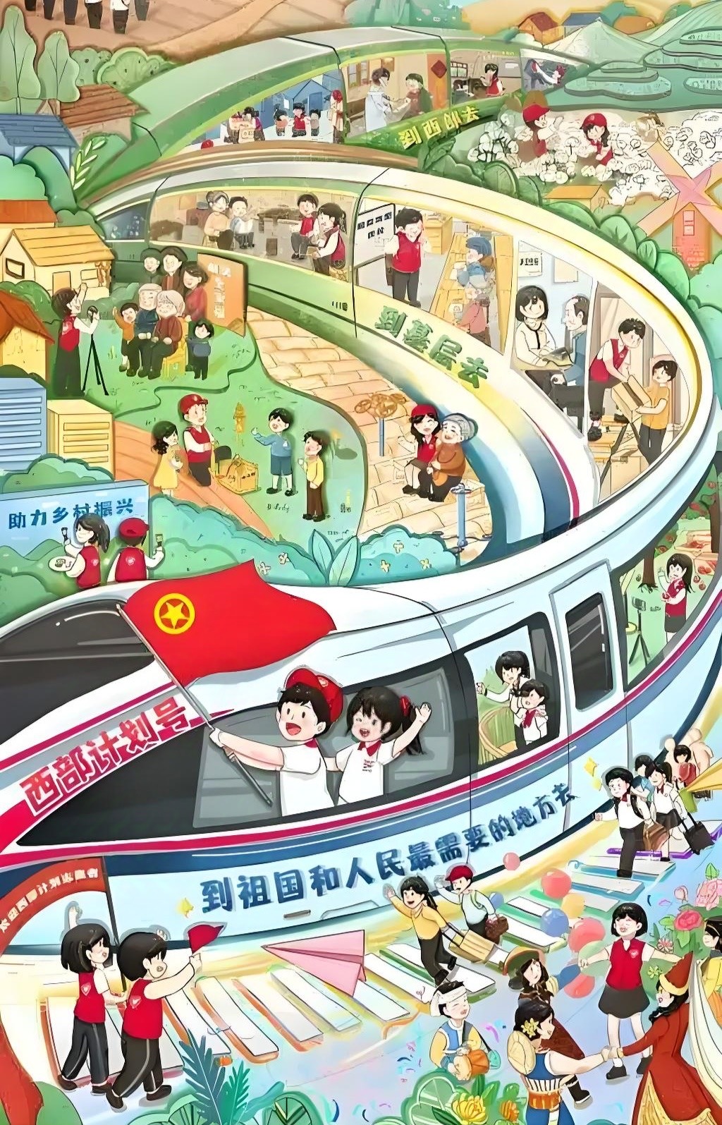 参赛者围绕志愿者扎根西部的工作瞬间和对西部未来发展的美好展望等关键要点,展开创意构思,全身心投入创作。他们以绚丽多彩的色调,生动鲜活地呈现志愿者在西部偏远地区为孩子们点亮知识灯塔的温情画面。从最初草图的勾勒,到上色润色时的精雕细琢,再到反复推敲、多次修改完善,每个环节都倾注了参赛者们的心血与奇思妙想。最终呈现的一幅幅海报,不仅在设计上美轮美奂,还承载着参赛者对西部计划的深刻理解,寓意深远。评审小组依据题材积极健康、主题突出鲜明、构图精妙合理等标准,筛选出优秀作品。