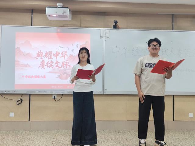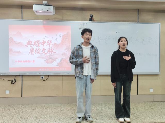 为弘扬中华优秀传统文化,进一步激发学生对中华经典的热爱,4月20日,太阳成集团tyc151cc于11号教学楼A304教室开展“典耀中华,赓续文脉”中华经典诵读活动,2023、2024级部分同学参加。