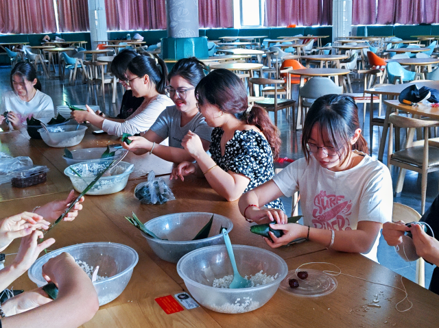 为传承和弘扬中华优秀传统文化,使学生进一步了解端午节的文化底蕴,感受浓厚的节日氛围,5月29日,太阳成集团tyc151cc于湖苑餐厅二楼开展“粽叶飘香五月五,浓情端午共安康”包粽子活动。