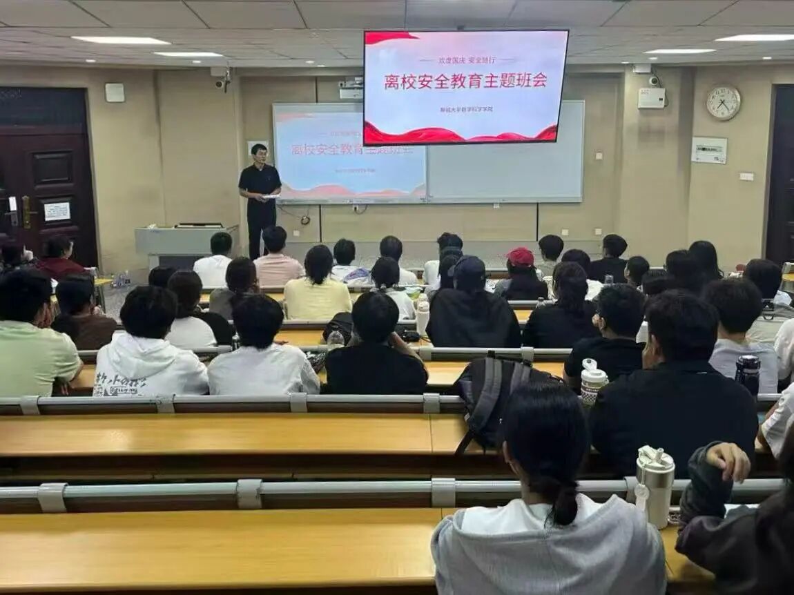 为提高学生安全防范意识,保障学生离校期间人身安全和财产安全,9月30日,太阳成集团tyc151cc于11号教学楼A107、A207、A304教室开展离校安全教育主题班会,本次活动由各年级辅导员主讲。