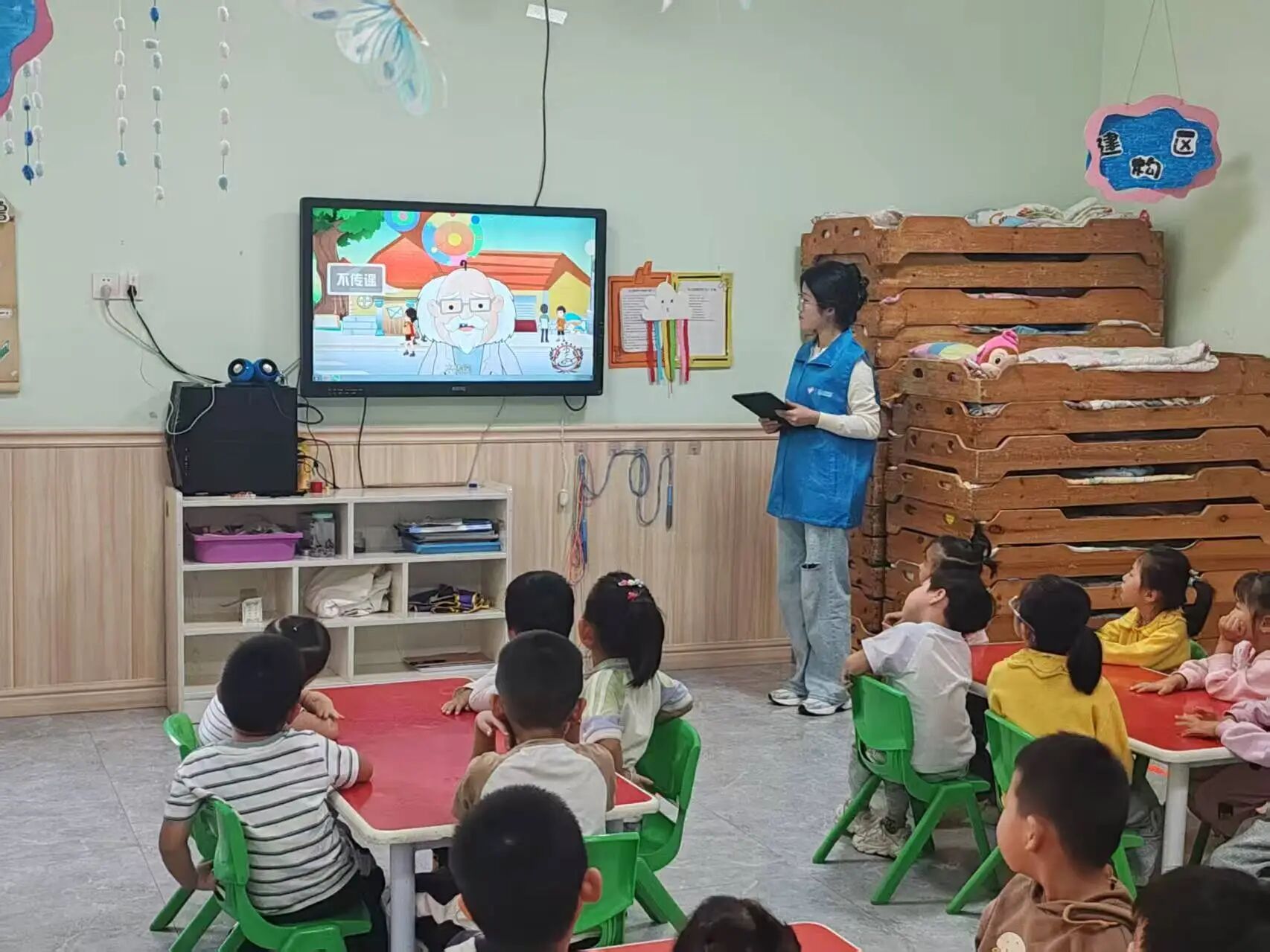 本次宣讲分为两大板块。一是“生活中的核辐射”板块,宣讲团成员系统地向小朋友们讲解了核辐射的类型以及生活中常见的电离辐射,他们将肉眼不可见的核辐射形象类比为“隐身的微观粒子”,清晰地阐释了天然辐射与人工辐射的分类标准。二是“核技术的应用”板块,宣讲团成员分别从工业、农业等方面讲述了核技术带给人类生活的影响,用通俗的语言将抽象的概念变得简单易懂。小朋友们认真聆听,积极提出问题,宣传团成员耐心解答,引导小朋友们主动了解科学、热爱科学。活动最后,宣讲团成员组织小朋友们进行集体盖章留念,一枚枚印着核技术应用场景的纪念章被小朋友们认真地盖在笔记本上,每一个图案都对应着宣讲中提到的知识点,本次集体盖章留念活动既是对本次科普内容的趣味回顾,又在小朋友们心中播下科学探索的种子。