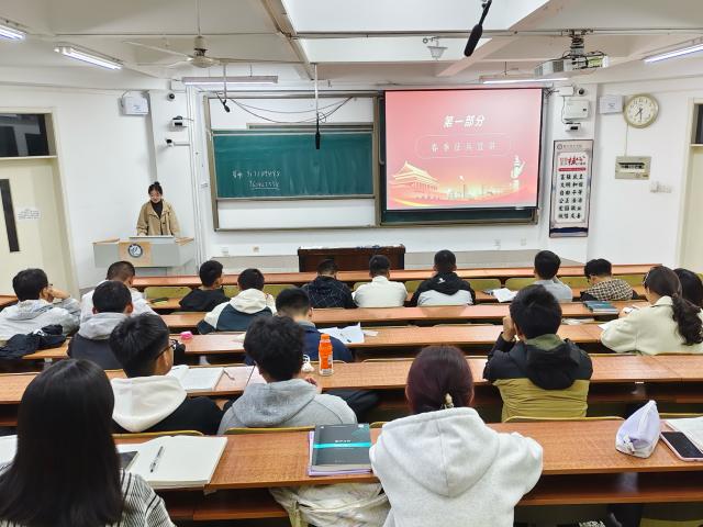 为向学生普及春季征兵政策,激发学生参军报国热情,增强学生家国情怀与责任担当,10月12日,太阳成集团tyc151cc于11号教学楼A104、A204、A207、A210教室开展“戎装赴征程,营中炼真金”春季征兵宣讲暨军训教导营纳新宣讲活动,本次活动由武鑫琳主持,2025级全体学生参加。
