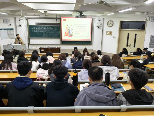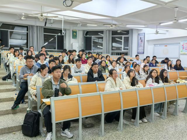 首先,武鑫琳向同学们详细解读了春季征兵的条件、报名流程以及大学生参军的优惠政策,让他们对参军报国的意义与价值有了更具体的认知。其次,武鑫琳通过视频展示,具体讲解了教导营的职能定位与纳新要求,并强调教导营是锤炼意志、提升能力的重要平台,能够通过系统化训练与多样化实践,助力学生全面成长。互动环节,同学们积极提出问题,武鑫琳耐心细致解答,进一步加深了大家对征兵政策的理解,现场气氛浓厚热烈。最后,武鑫琳鼓励同学们将个人理想融入国家需求,无论在军营还是在教导营,都要锤炼品格、增长才干,用青春与担当书写无悔篇章。
