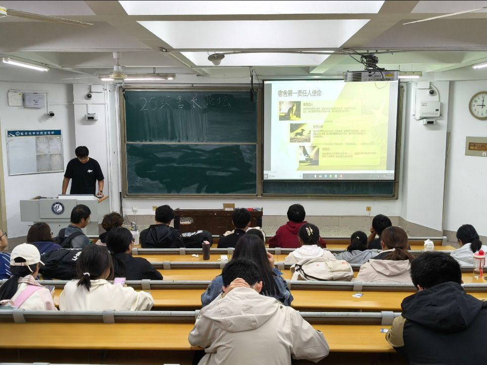 本次舍长论坛活动的分享内容包括角色定位和职责清单两部分。活动伊始,赵庆涵系统阐述了舍长的角色定位,他强调,舍长作为宿舍的“第一责任人”,既是学校政策的执行者,也是同学诉求的代言人,在协调成员关系、营造优良氛围中发挥着不可或缺的作用。随后,赵庆涵详细解读了舍长职责清单,明确要求大家做好信息传递、秩序维护和氛围营造等工作。互动环节,各位舍长积极发言,表示将切实履职,加强沟通协作,共同打造文明和谐的宿舍环境。最后,赵庆涵对全体2025级舍长提出三点要求:一是及时传递信息,确保信息畅通;二是发挥带头作用,注意宿舍安全;三是营造良好风气,争创优秀宿舍。