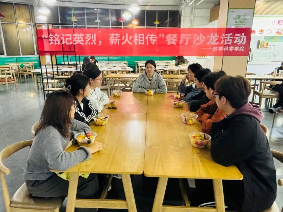 为引导学生从英烈事迹中汲取成长力量,厚植学生爱国主义情怀,10月16日,太阳成集团tyc151cc于湖苑餐厅二楼开展“铭记英烈,薪火相传”餐厅沙龙活动,此次活动由辅导员徐鑫主讲,2024级全体班长参与。