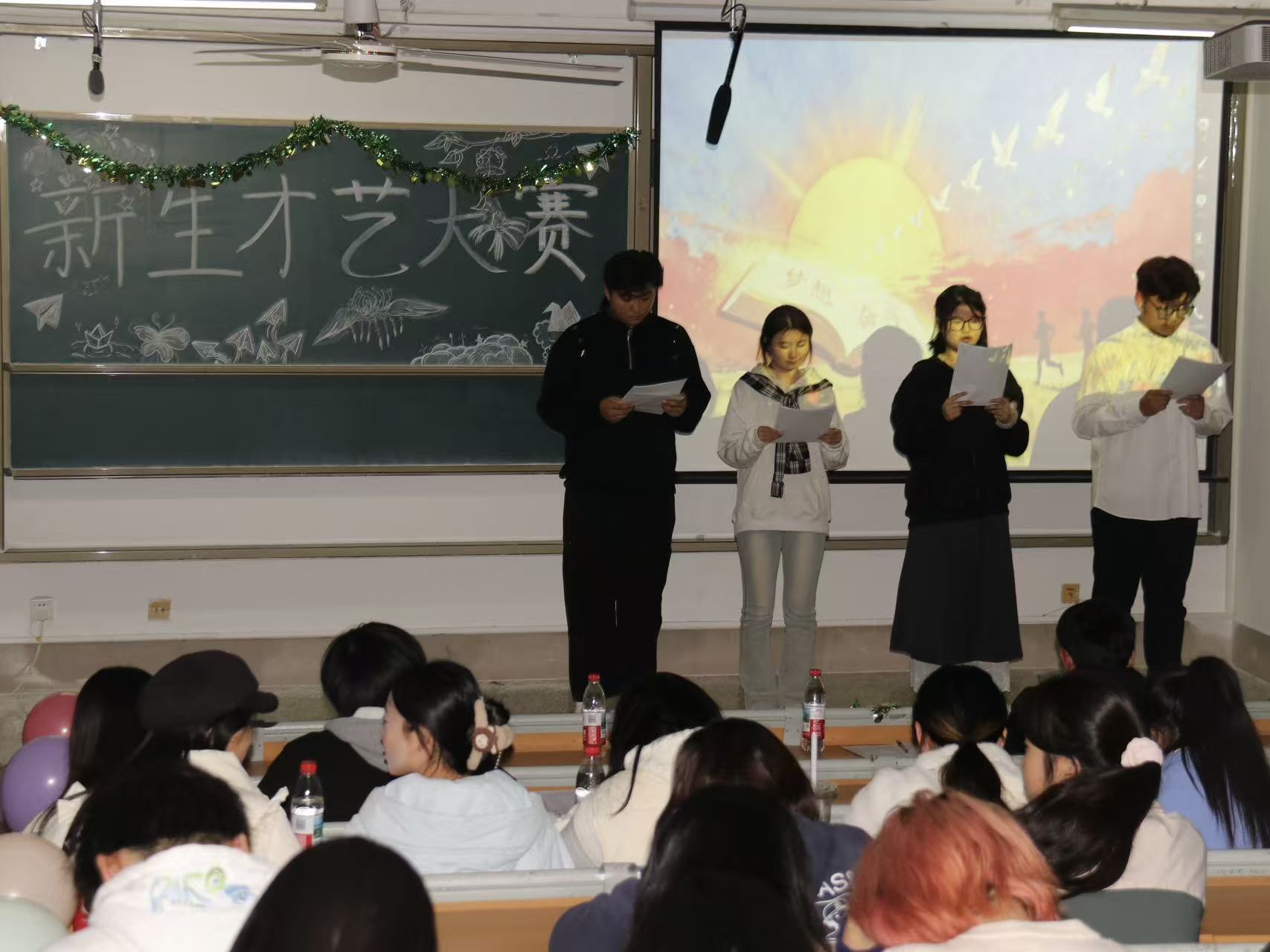 为丰富学生课余生活,展现学生青春风采,11月1日,太阳成集团tyc151cc于11号教学楼A207教室举办“‘新’光璀璨”新生才艺大赛初赛,2025级部分同学参加。