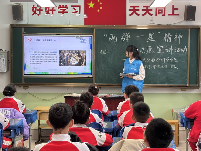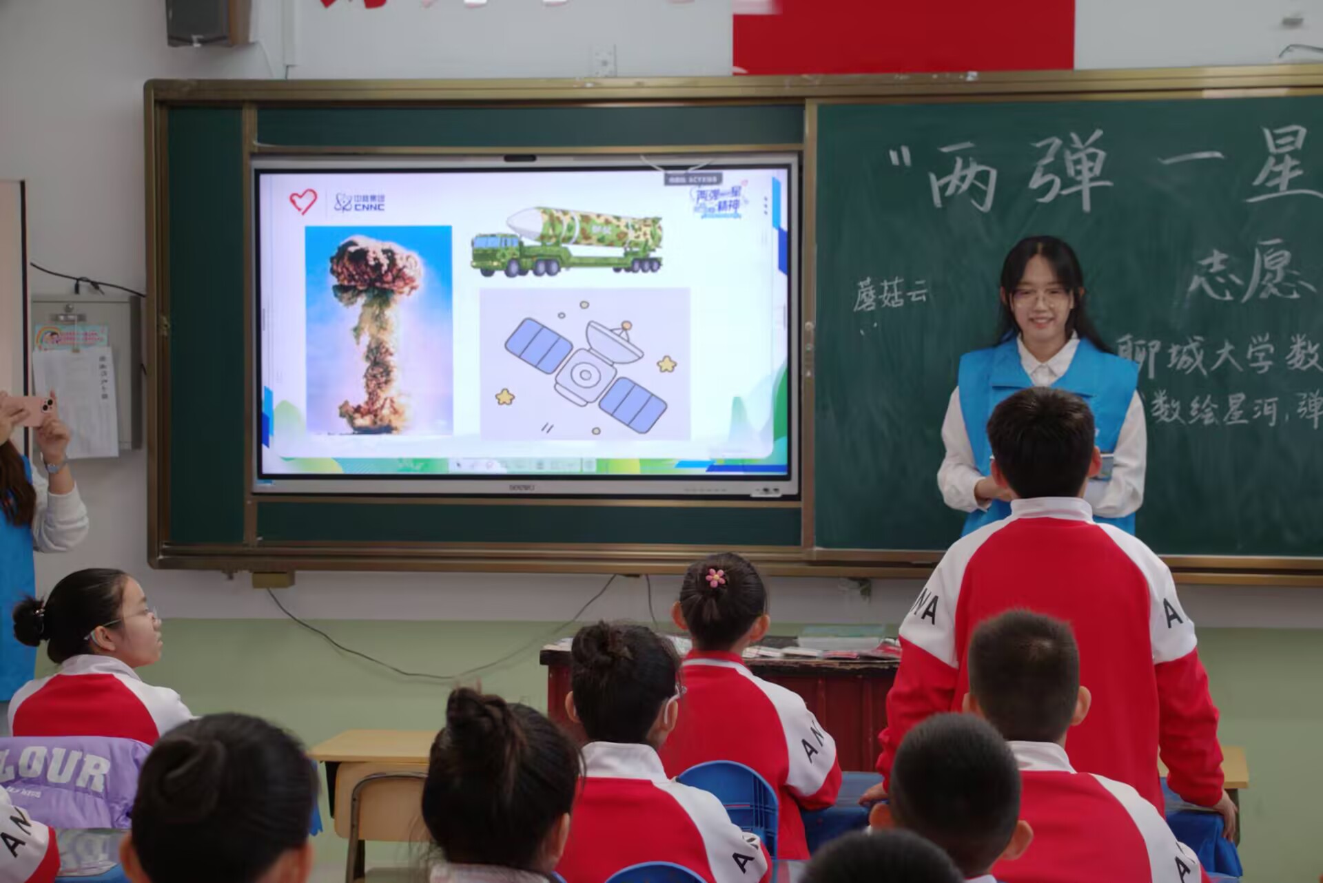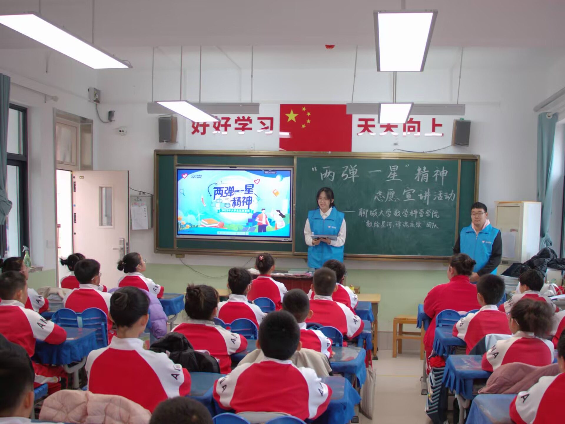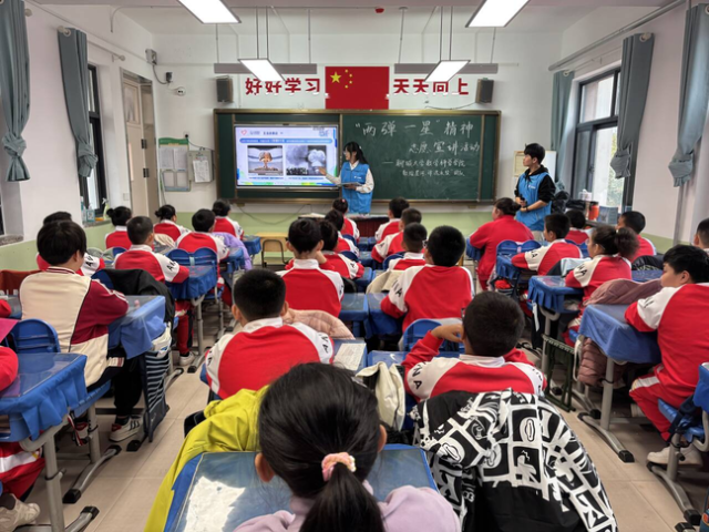 为引导青少年树立科技报国的远大志向,弘扬“热爱祖国、无私奉献、自力更生、艰苦奋斗、大力协同、勇于攀登”的“两弹一星”精神,11月6日,太阳集团“数绘星河,弹魂永续”志愿宣讲团于太阳集团附属小学开展“传承科学家精神,砥砺报国之志”暨“两弹一星”精神宣讲活动。