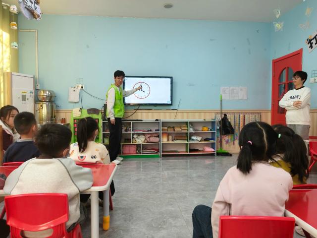 互动答疑环节,小朋友们踊跃举手提问,围绕数学知识应用积极交流,志愿者耐心细致回应每一个疑问,现场氛围热烈融洽。活动期间,志愿者们全程用心服务,在组织协调、沟通引导与应急处理中锤炼自身能力,以真诚付出诠释“奉献、友爱、互助、进步”的志愿精神。