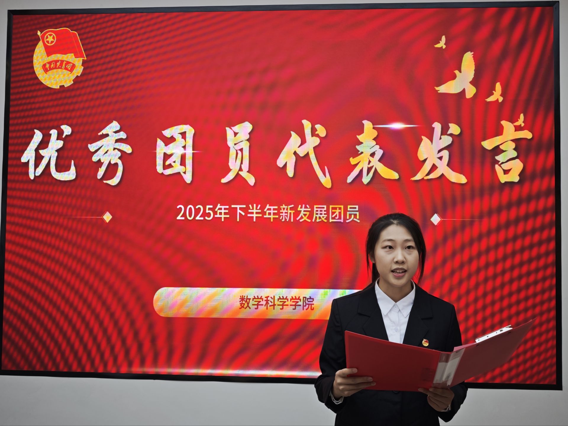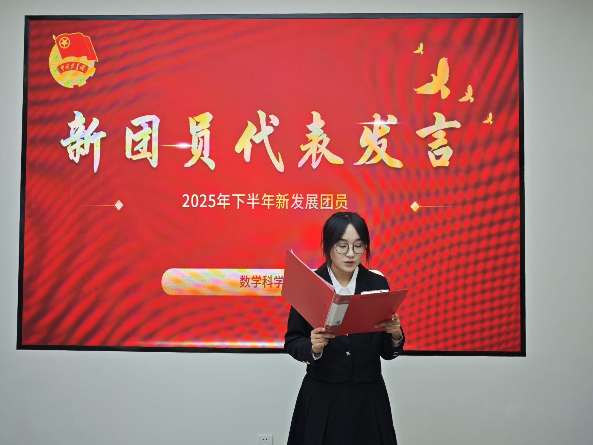 新团员代表翟恒瑶代表全体新团员承诺,将会严格遵守团的章程,履行团员义务,勤学善思笃行、锤炼过硬本领,以青春之担当践行时代使命,为理想不懈奋斗。随后,优秀团员代表孙若琪分享了三点感悟,一是要铸牢信仰之基,争做有志青年,在思想淬炼中坚定理想航向;二是要锤炼实干本领,争做有为青年,让青春在服务人民、奉献社会的实践中熠熠生辉;三是要恪守组织规范,争做有责青年,用点滴行动为团组织的蓬勃发展添砖加瓦。