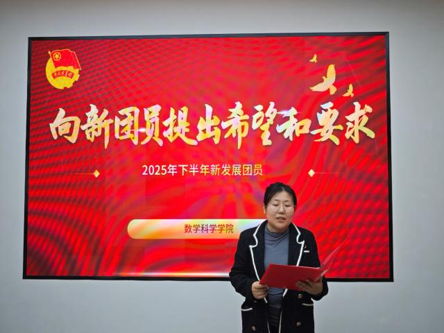 团委书记岳琳琳向新团员表示热烈祝贺,并提出四点希望和要求:一要铸牢信仰之基,勇担时代使命,牢记“党有号召,团有行动”的优良传统;二要锤炼过硬本领,争做学习先锋,以学习为第一要务,学好专业知识、营造优良学风;三要践行服务宗旨,彰显青年担当,提升自身形象;四要恪守品德准则,引领文明风尚,认真履行团员义务与责任,永葆进取之心。