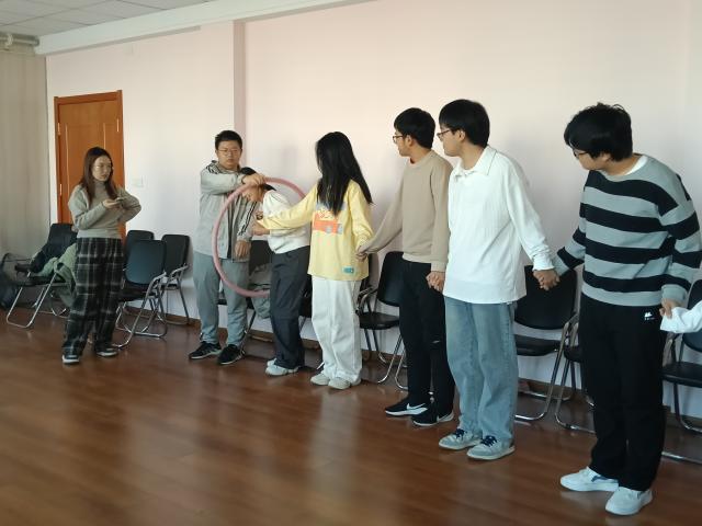 活动伊始,主持人向同学们介绍本次活动的核心目的与游戏规则,让同学们清晰理解参与要求,为活动的顺利进行做好充分准备。随后,进入游戏环节:“大风吹”游戏中,发令者喊出特征指令后,符合条件的同学迅速起身换位,让现场氛围瞬间活跃起来;“滚雪球”游戏中,同学们按顺时针依次介绍姓名、家乡和兴趣爱好,后续同学则负责复述前几位同学的信息,让彼此在倾听与复述中加深了解;“合力建塔”游戏中,同学们以小组形式通过肢体协作搭建“人体塔”,在一次次调整与配合中,一座座高且稳的“人体塔”相继成型,充分展现了团队的智慧与默契。游戏结束后,同学们积极分享本次活动的收获,进一步将游戏中的直观感受转化为具体的协作经验,让团队协作的内涵在交流中变得更加清晰。