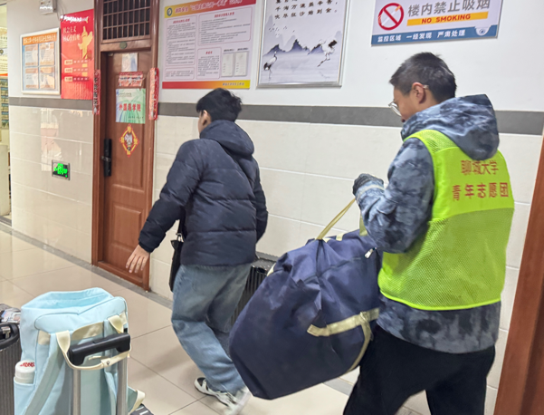 启程当日清晨,为助力见习学子搬运行李,学院精心组织开展“志愿同行,温情护航”志愿服务活动。志愿者们按照前期分工迅速投入工作,在宿舍区与乘车点的往返途中主动担当、协同配合,全力保障学长学姐们的行李转运稳妥有序,以实际行动践行了“奉献、友爱、互助、进步”的志愿精神。在志愿者们的热心帮助下,全体见习学生有序乘车,顺利启程。