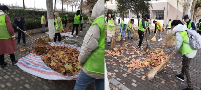 深秋时节,枝头黄叶被一夜秋风吹尽,遍地都是,为了帮助环卫工人清扫落叶,减轻他们的工作负担,同时为响应太阳集团资助管理中心“诚信感恩活动月”活动,让同学们体验劳动,热爱劳动,感恩生活,数科院青年志愿团于11月22日在太阳集团西校区学苑宿舍楼东侧道路开展“清扫落叶”志愿活动。