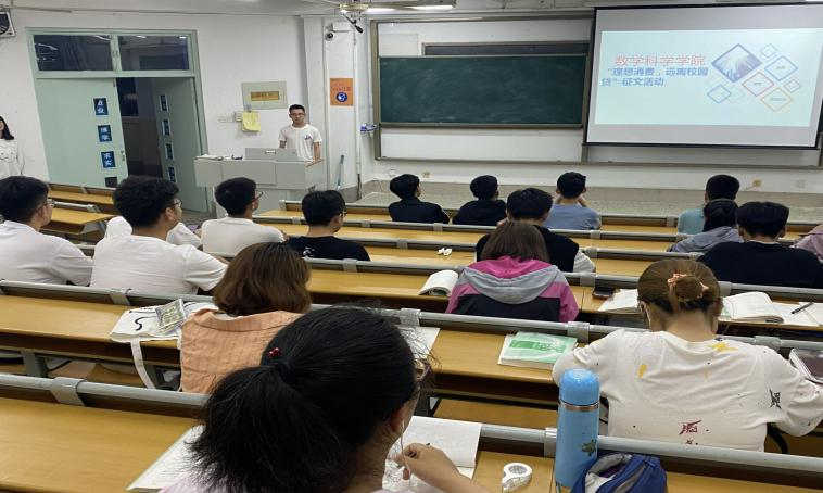首先向同学们介绍什么是校园贷,讲解了校园贷对学生生活的影响与危害,让同学们对校园贷有大致的概念。校园贷,又称校园网贷,是指一些网络贷款平台面向在校大学生开展的贷款业务。校园贷款具有高利贷性质,会滋生借款学生的恶习,若不能及时归还贷款,放贷人会采用各种手段向学生讨债,甚至有不法分子利用“高利贷”进行其他犯罪,同时向同学们播放了几个深受校园贷影响学生的真实案例,使同学们更为真切地认识到校园贷带来的严重后果。最终,本次活动在同学们对校园贷的忖量中拉下帷幕。在报告会结束之际,主持人向各个活动参与者发起文章和平面设计作品的征集,选出的优秀作品将代表学院参加校赛,让同学们能够用不同形式表达自己对校园贷的认识及深刻体会。