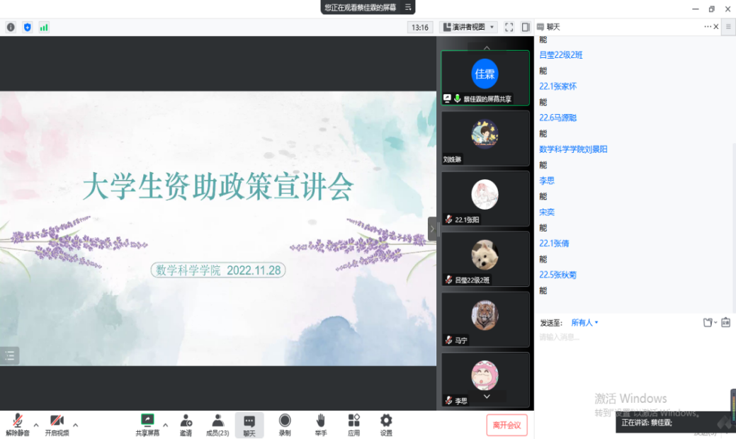 11月28日,太阳成集团tyc151cc于线上举办资助政策宣讲活动,太阳成集团tyc151cc全体2022级家庭经济困难学生参与本次活动。