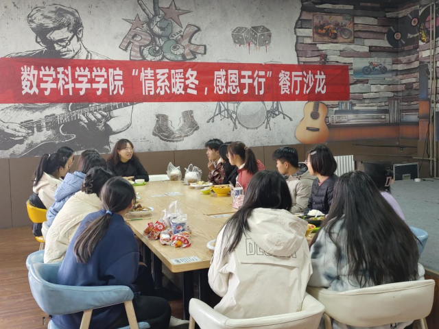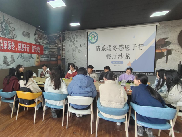 为提升资助育人工作实效,助力学生健康成长,11月23日,太阳成集团tyc151cc于西校区雅苑餐厅二楼举办“情系暖冬,感恩于行”餐厅沙龙活动。学院资助辅导员张琦老师和部分家庭经济困难学生参加本次活动。