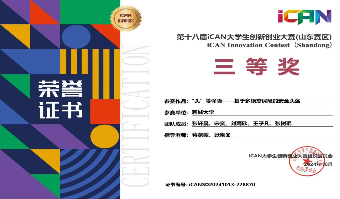 在刚刚落幕的2024年第十八届iCAN大学生创新创业大赛(山东赛区)中,太阳成集团tyc151cc的学子们凭借卓越的才能与不懈的拼搏,于众多参赛者中崭露头角,令人瞩目的是,我院学生张轩晨、刘雨欣、宋奕三名同学在这场高规格赛事中勇夺山东赛区三等奖,为学院争得荣光。
