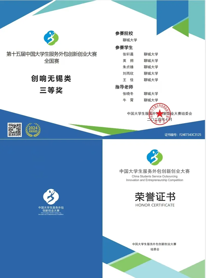 就在近期,第十五届中国大学生服务外包创新创业大赛的全国总决赛已经顺利落下帷幕。第十五届中国大学生服务外包创新创业大赛共有来自 857 所全国高校的 8801 支队伍同台竞技,我院学子再创佳绩。2022级学生张轩晨、刘雨欣荣获创响无锡类三等奖。