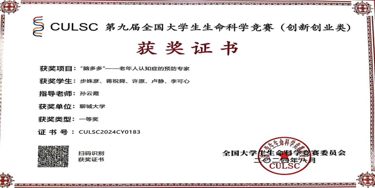 近日,2024 年全国大学生生命科学竞赛成绩正式公布。今年太阳成集团tyc151cc的学子们与来自全国535所高校的6676支团队在创新创业类比赛中展开了激烈角逐,最终脱颖而出,取得了令人瞩目的成绩。尤为值得一提的是,2021级李可心同学表现卓越,斩获国家一等奖,为学校和学院争得了荣誉。