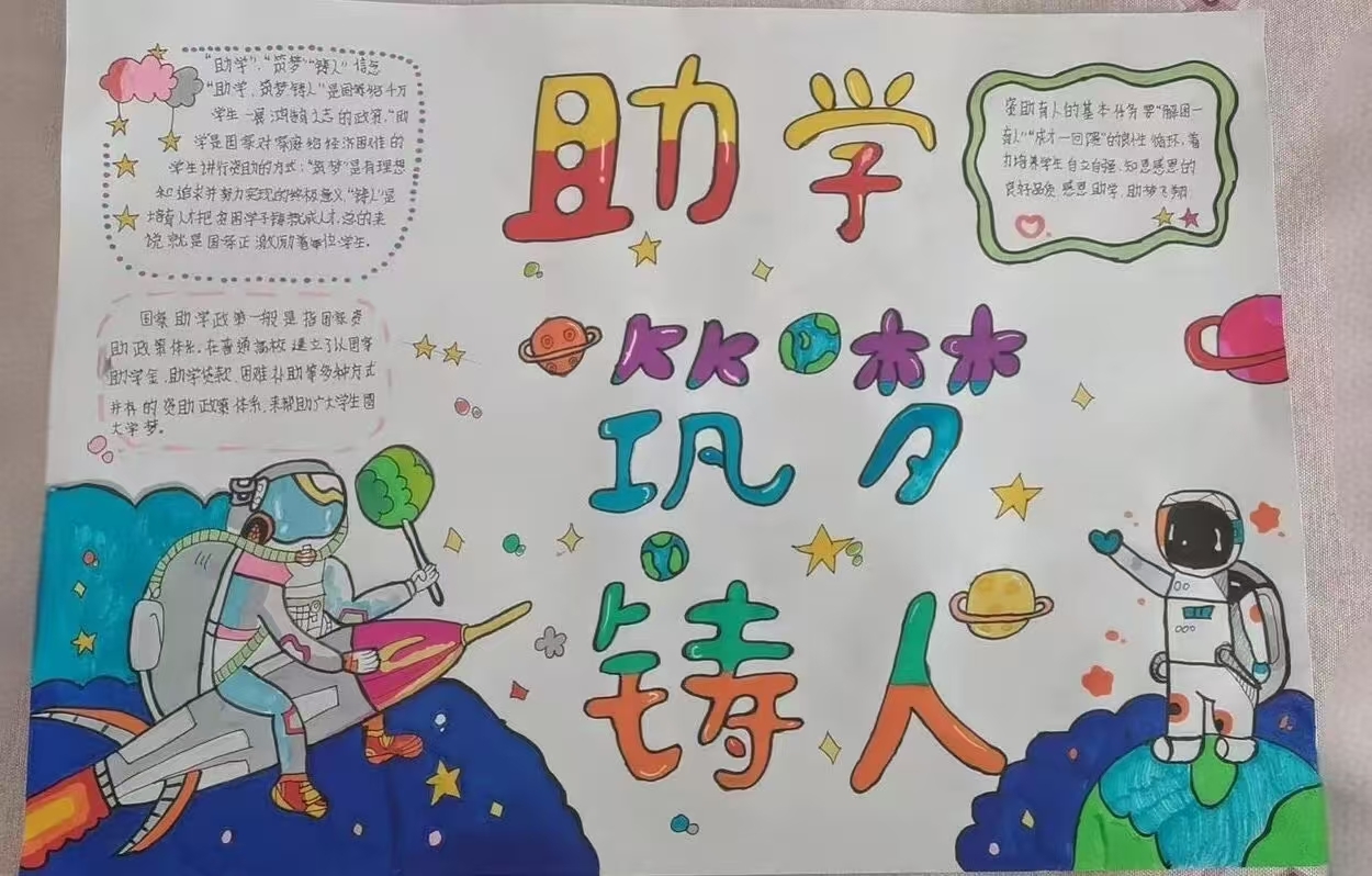 为增进同学们对资助政策的了解,激发他们的学习动力与追梦热情,12月2日到12月6日,太阳成集团tyc151cc勤工助学中心于线上举办“助其学,筑其梦”手抄报活动,2021级、2024级部分学生参加。