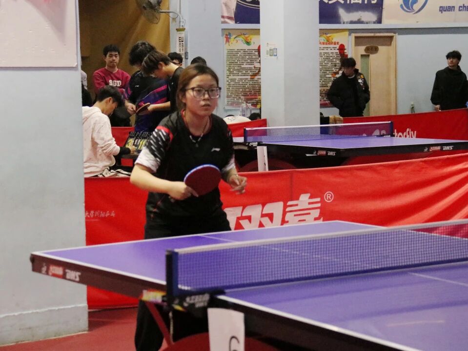乒乓球赛场上,选手们眉宇间透着沉稳与坚定,紧盯小球轨迹。发球时,手腕轻旋发力,乒乓球划出凌厉弧线擦网而过;接球时,跨步急冲,球拍稳稳迎击,清脆的击球声此起彼伏。相持阶段,选手们灵活移动,时而弓步探身轻挑,时而侧身转体猛攻,眼中闪烁着拼搏与坚定的光芒,尽显数科学子的竞技风貌。