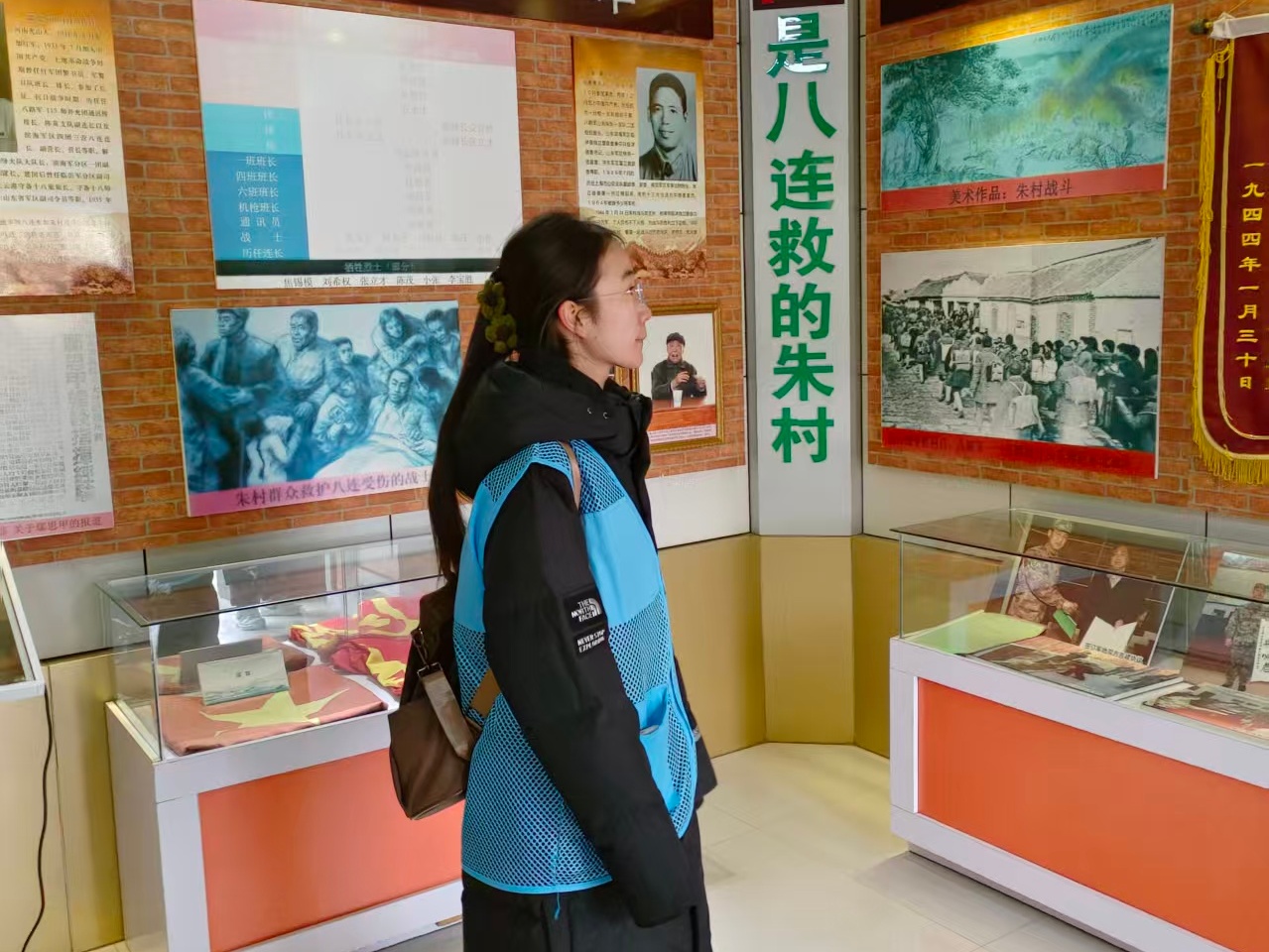 调研过程中,实践队走进朱村。从沭河畔的抗日战斗纪念碑到沂蒙支前馆,斑驳的独轮车、纳满细密针脚的军鞋,无声诉说着军民同心、保家卫国的红色记忆。朱村以红色基因凝心铸魂,以非遗技艺激活产业,走出了一条“红色文化+非遗产业+生态发展”深度融合的振兴新路,让古老沭河两岸焕发出蓬勃向上的时代生机。